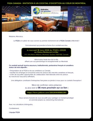 Accueil > > Événements à venir > Invitation au 1er évènement de la FG2A Canada à Montréal Invitation au 1er évènement de la FG2A Canada à Montréal 27/01 2026 Partager : Partager la publication "Invitation au 1er évènement de la FG2A Canada à Montréal" FacebookXLinkedIn Vous êtes journaliste ? Nous vous invitons à joindre Mme Sophie Hozatte : sophie.hozatte@fg2a.com contactez-nous Devenir adhérent